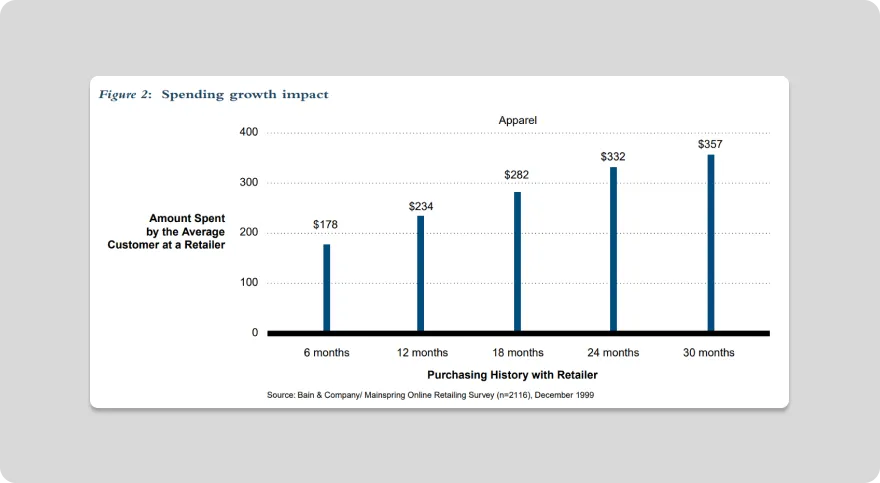 They also found—or at least put numbers behind the idea—that the longer customers stay with your business, the more money they spend.